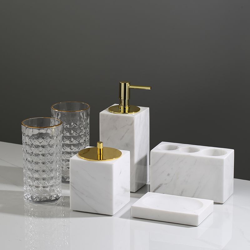 Jazz White Marble Emulsion Bottle Golden Head (Square) Jazz White Marble Emulsion Bottle Golden Head (Round) Jazz White Marble Cotton Stick Case Golden Cover (Square) Jazz White Marble Cotton Stick Case Golden Lid (Round)