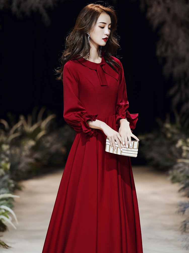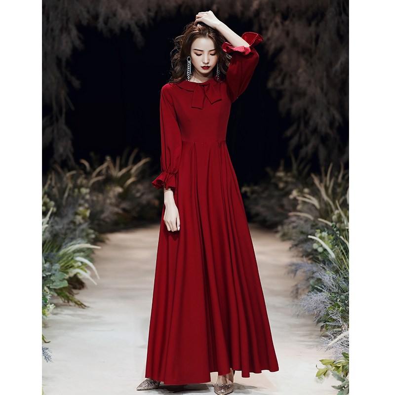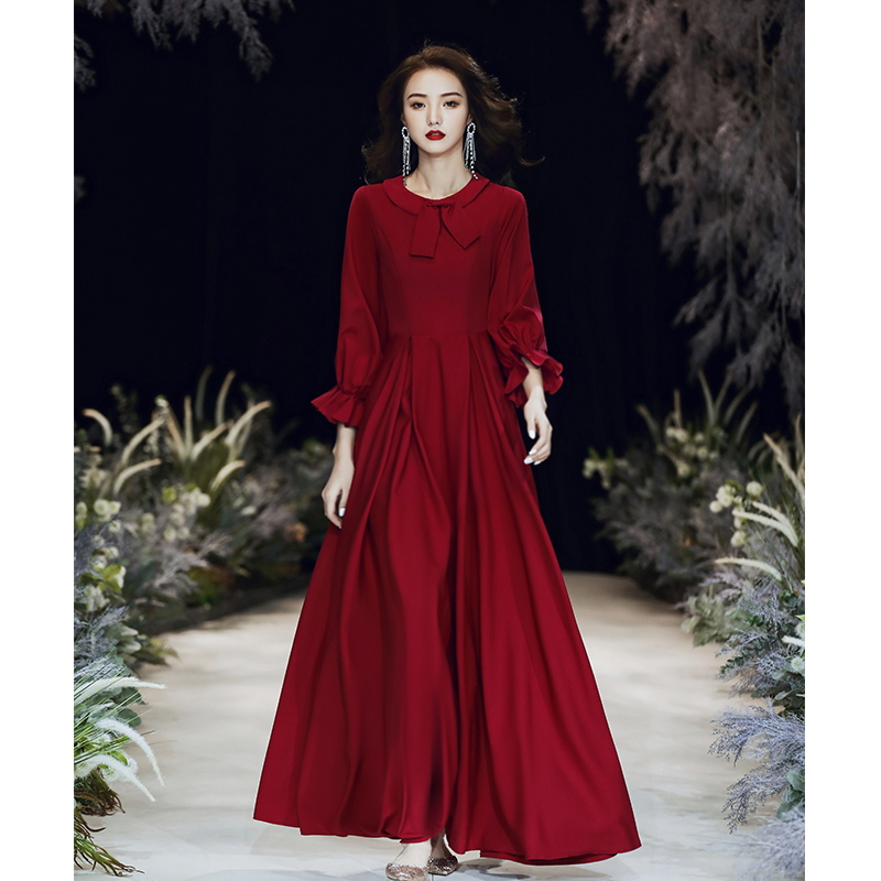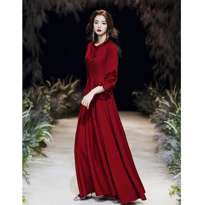 Wine Red Toast to the bride's wedding day Dress Autumn Winter Long Sleeves Wedding back to the Mented Wedding Gown Lady-Taobao