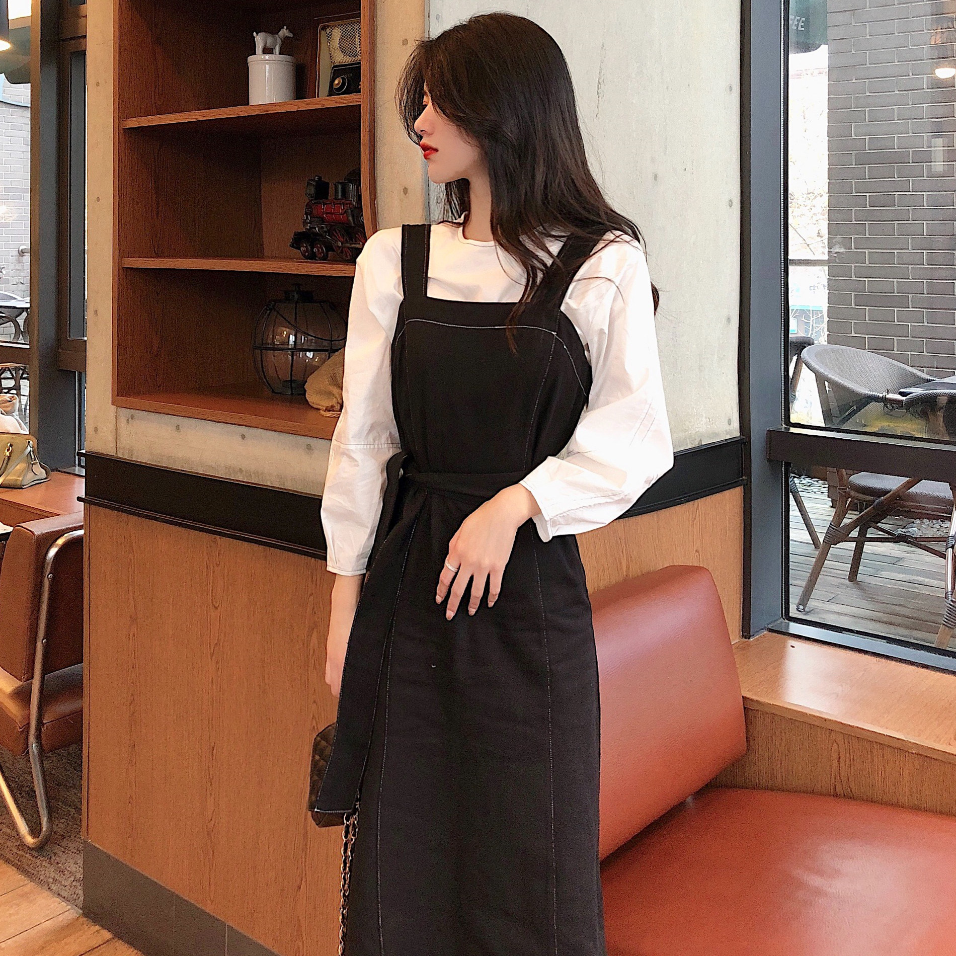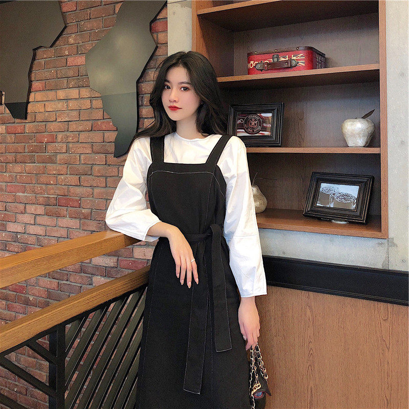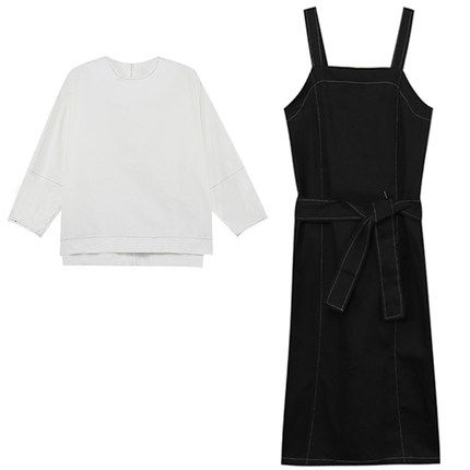 Strap skirt two-piece suit dress women's spring and autumn French little black dress foreign style age-reducing tea break design sense