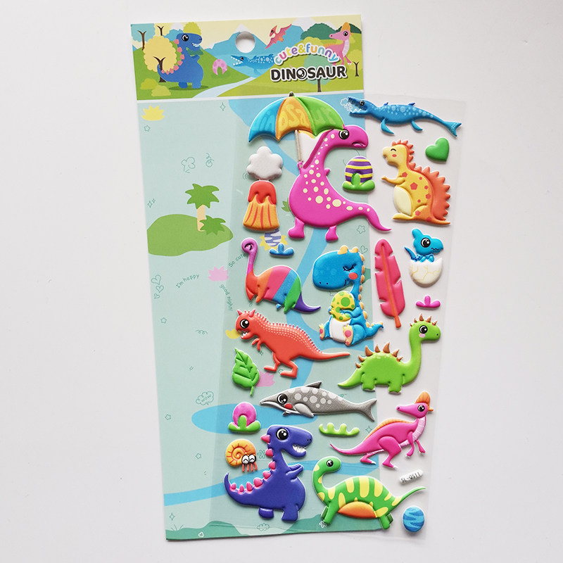 Lovely dinosaur stickers waterproof 3D children reward posting boy Fighting Tyranoid stickers small animal bubble posts