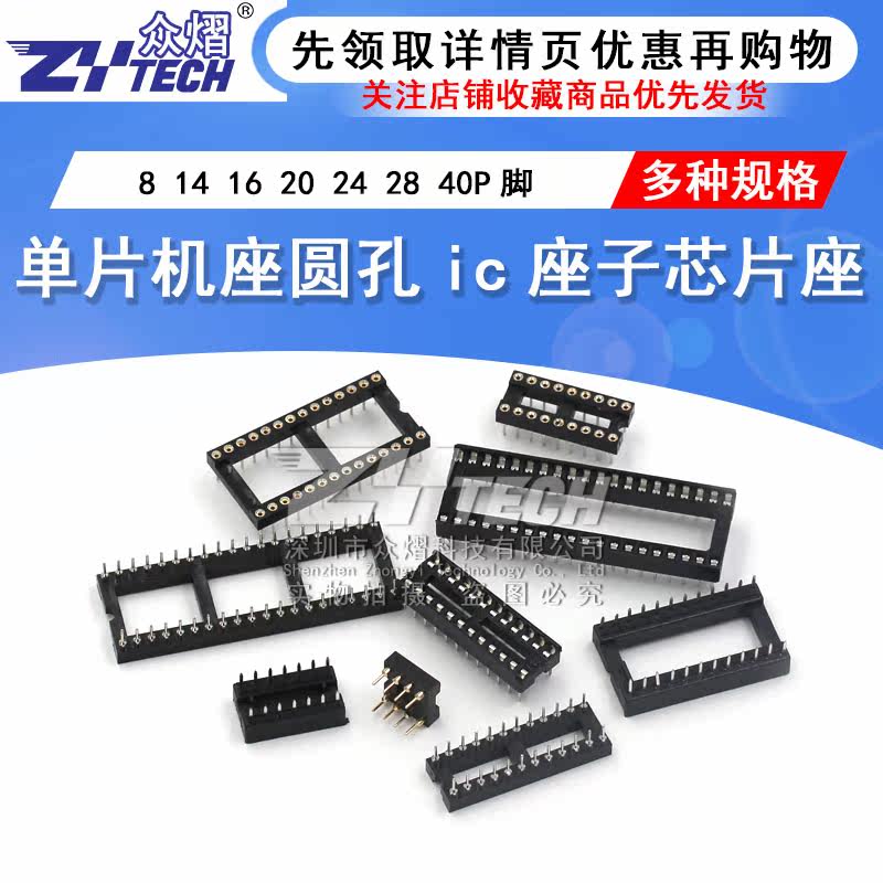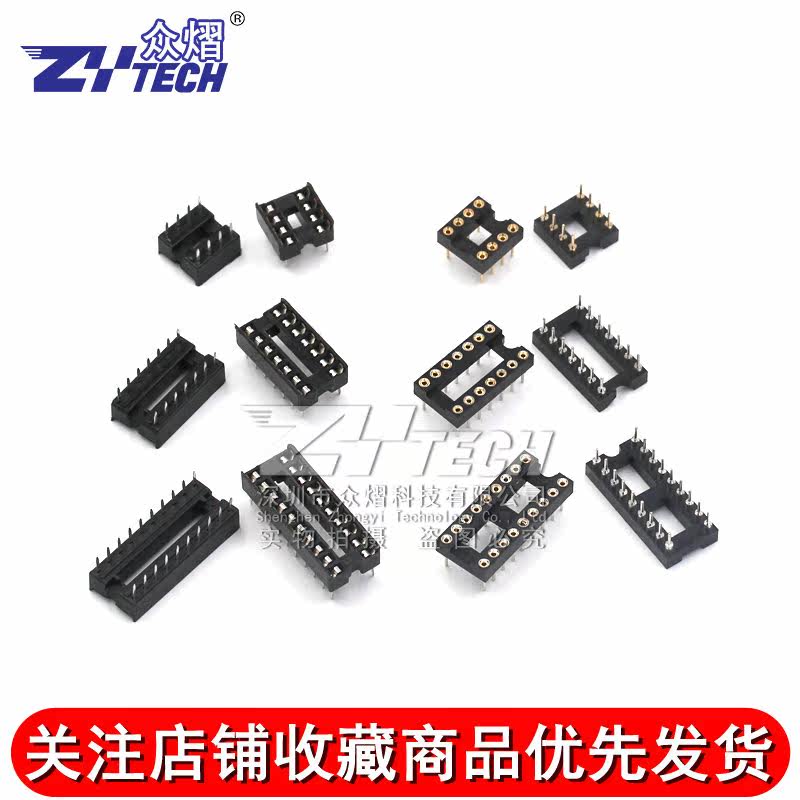 IC socket integrated block straight plug DIP single crystal sheet round hole base 8P 8P 14 14 20 20 28 40P feet