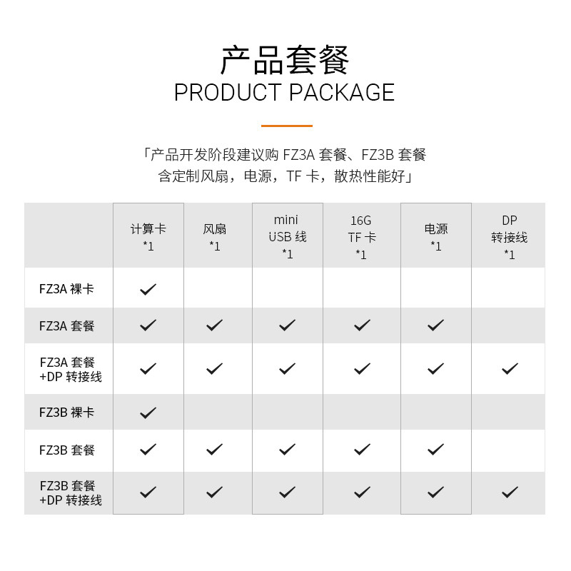 FZ3A bare card FZ3A package FZ3A package + DP to HDMI adapter line FZ3B bare card FZ3B package FZ3B package + DP to HDMI adapter cable