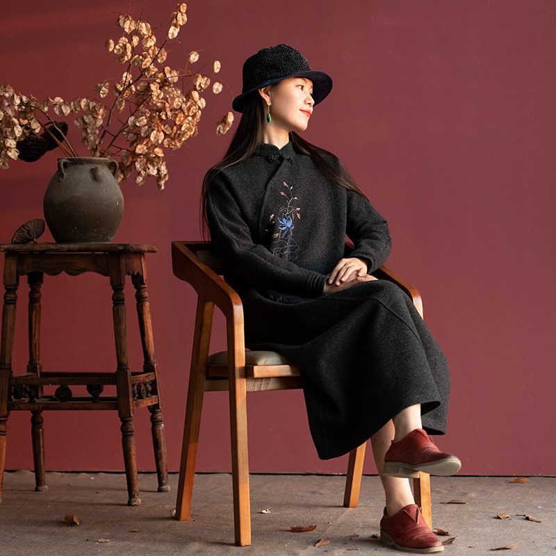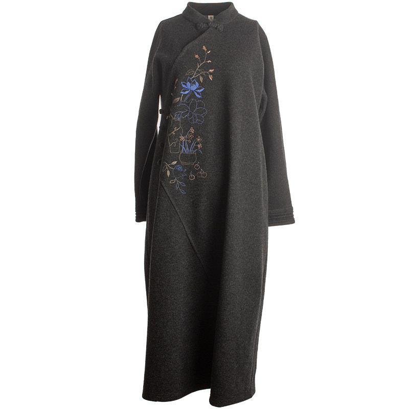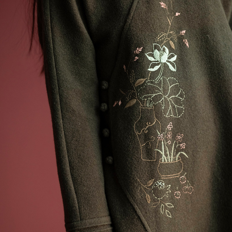 (Fangcaodu) Moshang Huakai original pure wool embroidered cheongsam over-the-knee coat women's long coat