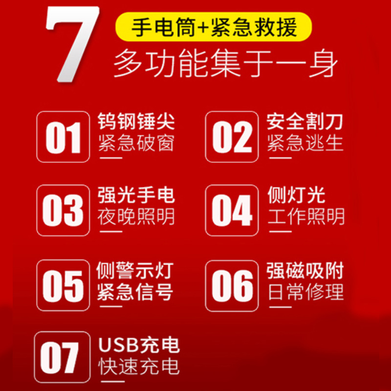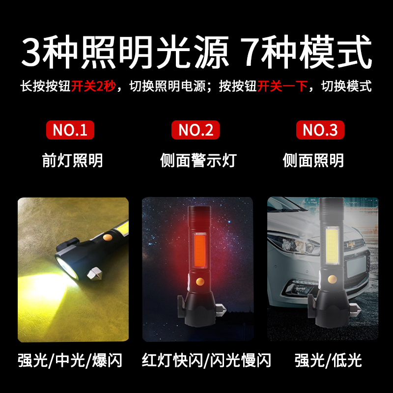 7 in 1 car broken window hammer multifunctional car safety hammer life-saving hammer strong flashlight household emergency rescue hammer