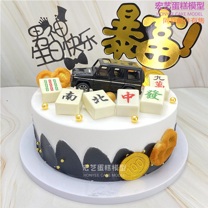 New Cartoon Fruit Mahjong Chess Card Creative Pop Gold Coins Storm Rich Cake Model Simulation Shop Window Furnishing Samples