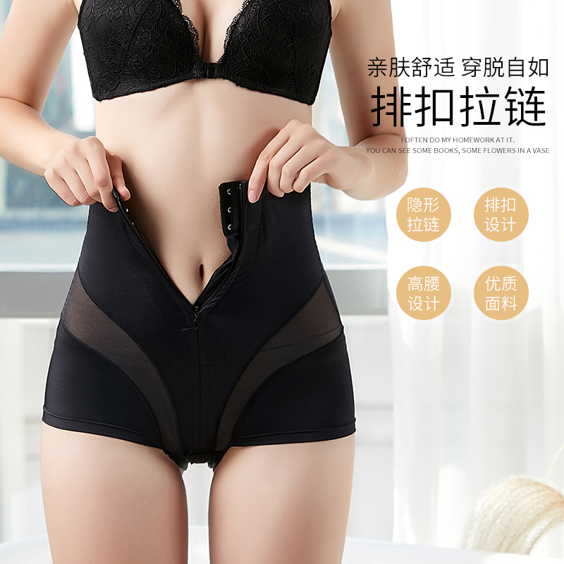 Postpartum high waist corset pants Zipper belly plastic waist Shape belly belly bondage pants Large size tight waist pants