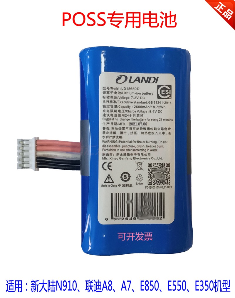 landi League di E850 Wireless Terminal Original Lithium Battery LD18650DG Lithium-ion Battery 2600mA Recommended