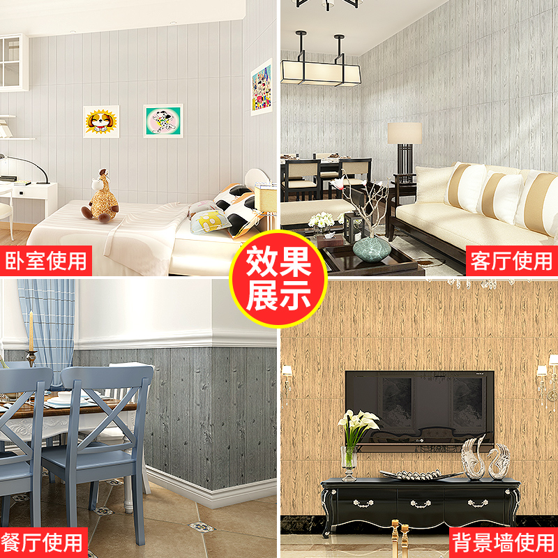 Wood grain wallpaper self-adhesive warm bedroom soft bag foam wallpaper 3d three-dimensional wall stickers background wall decoration stickers