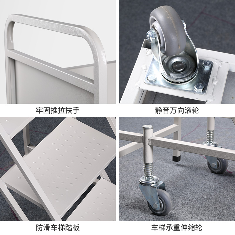 Three-story W-type bookcar(black) Two-step staircase(grey) Moving library box Stainless steel three-story bookcase Second-story V-type bookcar(grey) Two-step staircase(black) Three-step staircase(black