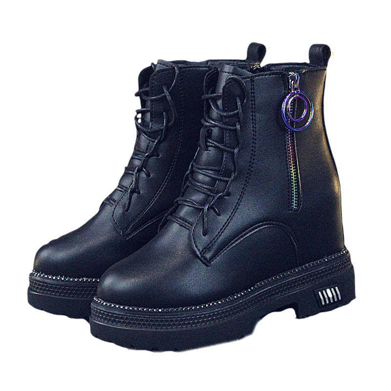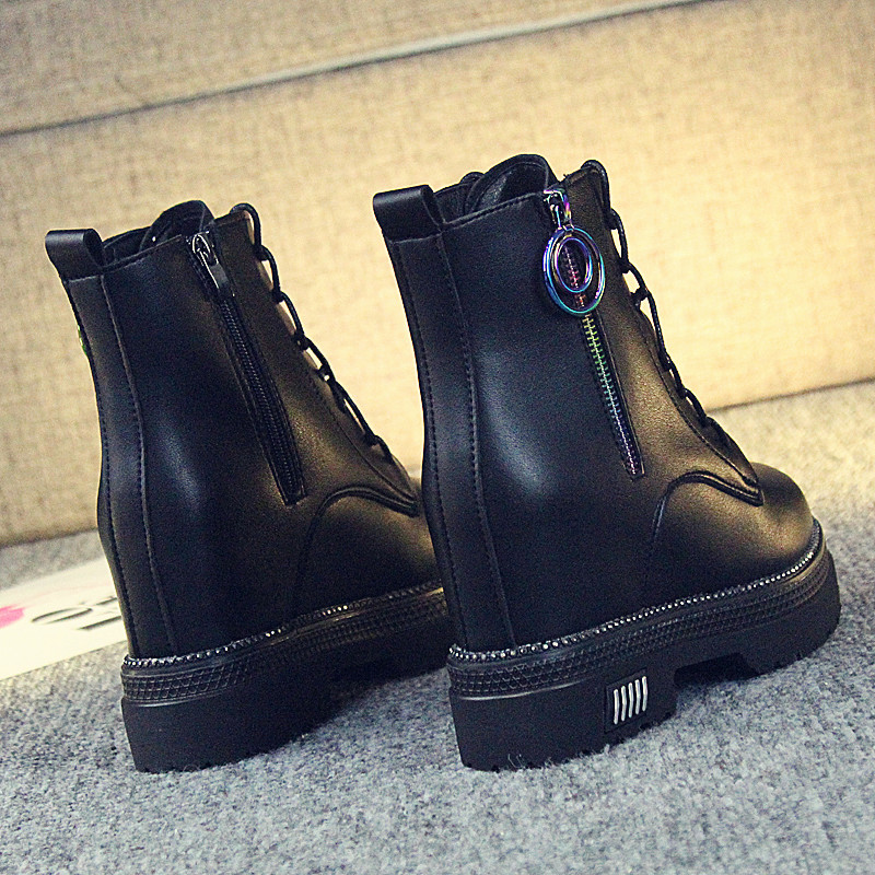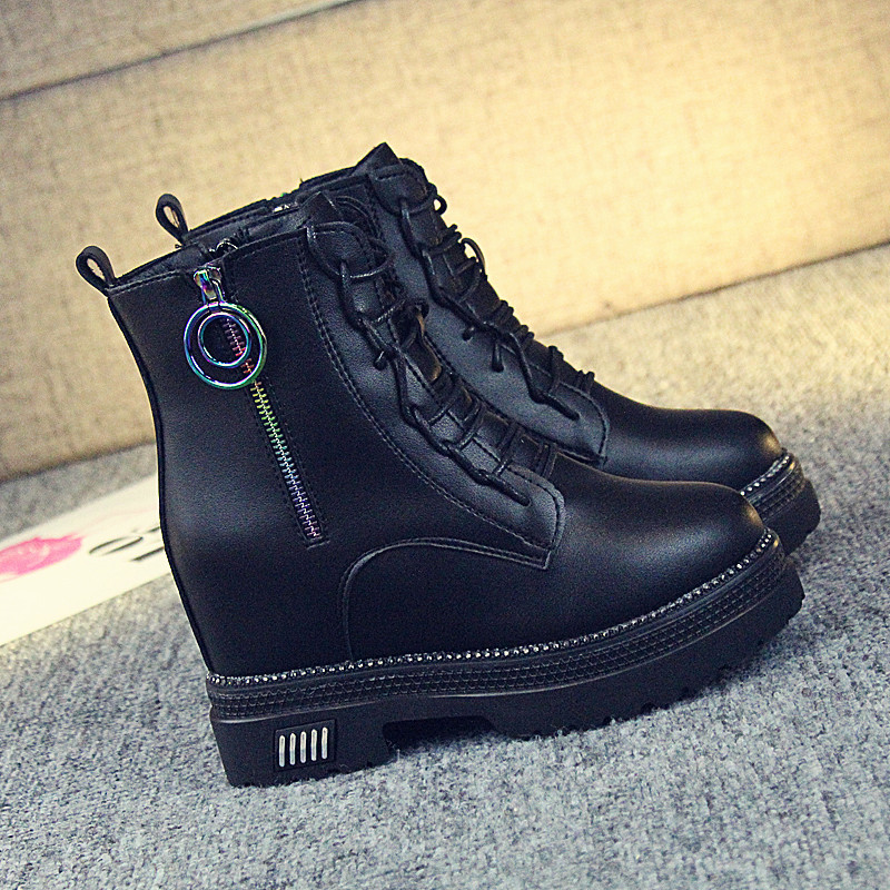 Inside heightening Colorful Side Pull Chain Casual Shoes Woman Gvet Warm Waterproof Desk Short Boots Woman 2021 Winter Slope heel Thin boots