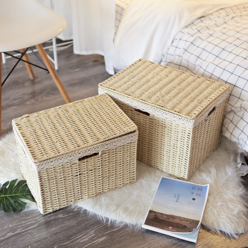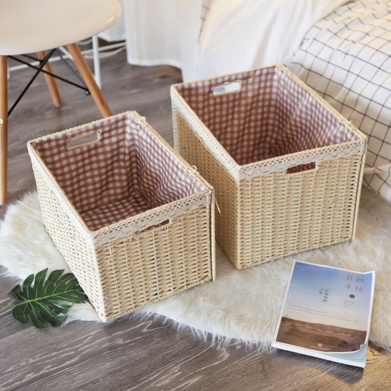 Japanese-style storage basket iron frame drawer-type good clothes fabric desktop basket laundry basket dirty imitation rattan sundries basket