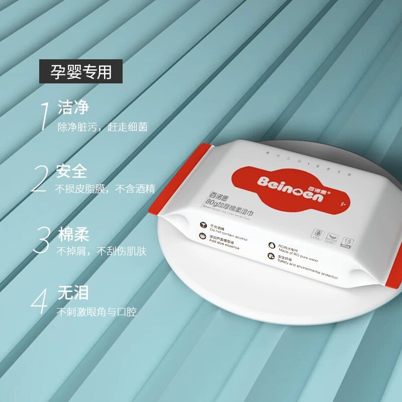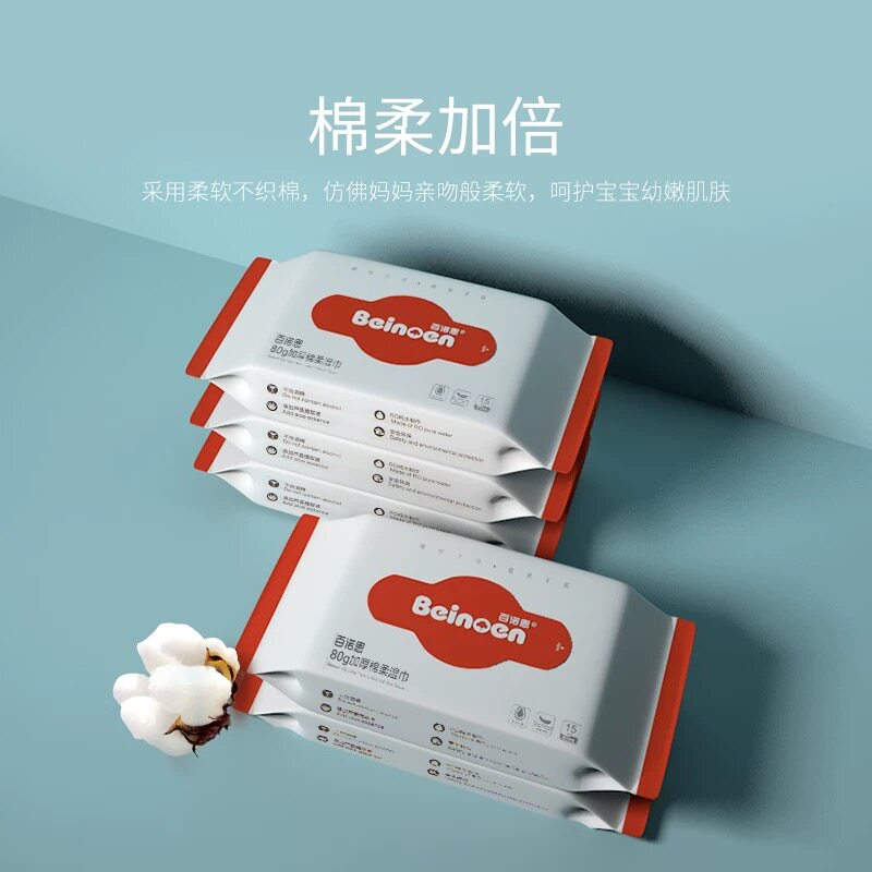 Official flagship Bainuoen wet wipes thickened infants and young children 15 pumps 25 packs of 80g pure cotton soft hand and mouth special wet wipes