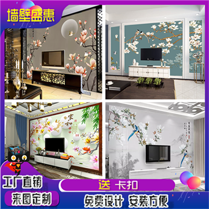 Chinese-style fine brushwork flower and bird high-gloss TV background wall bamboo and wood fiber integrated wall panel wall panel splicing flat seam 600