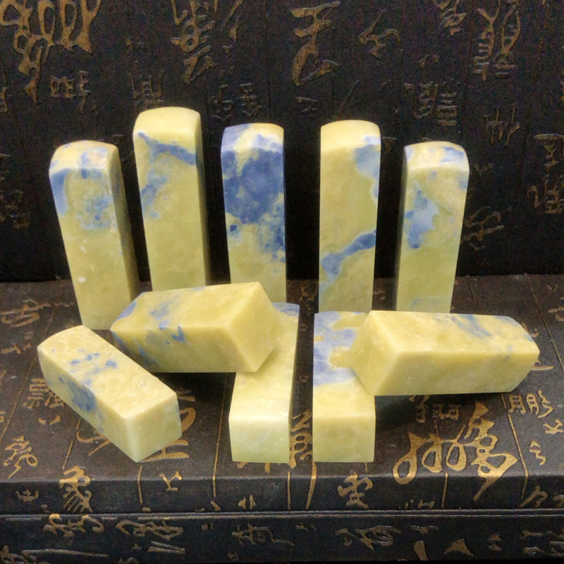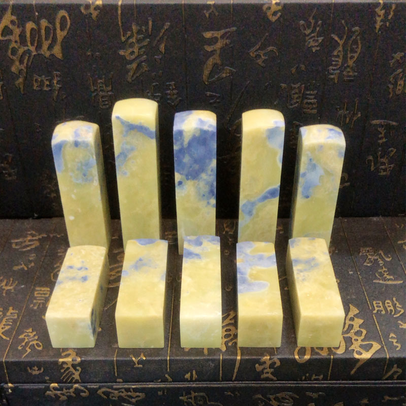 Qingtian seal blue blue nail frozen stone 2 0*height 6-7cm10 only packaged seal high quality gold stone cartridge