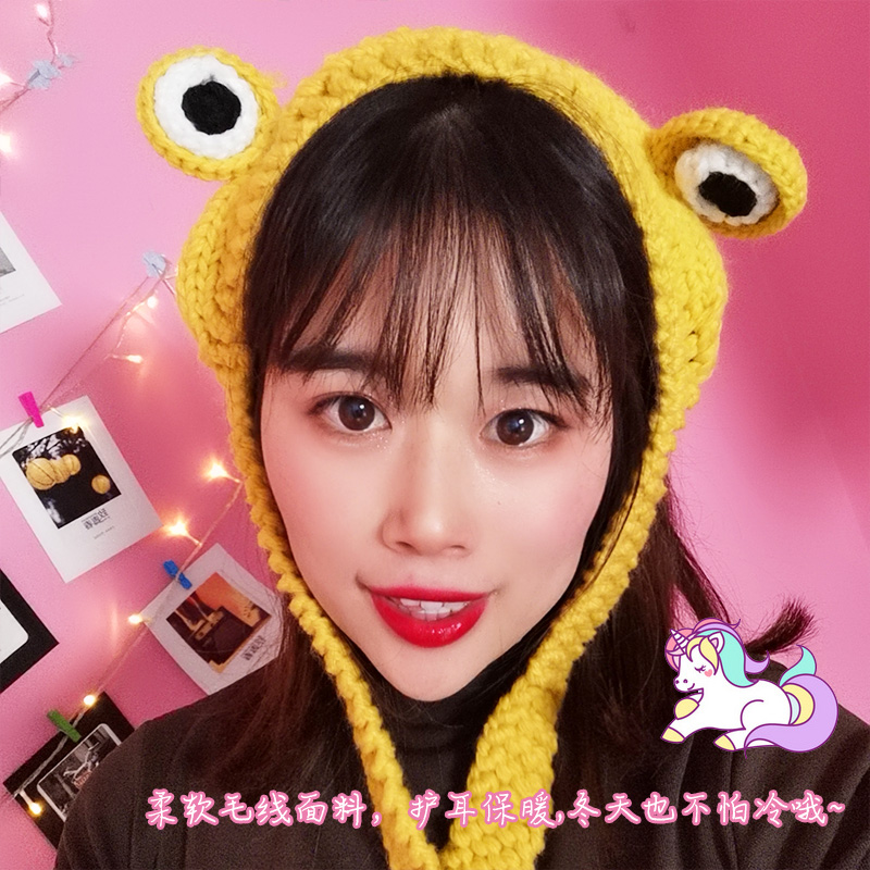 Noro Love Teenage Girl Hearts Knit Wool Line Frogs Hat Cute Warm Ear Cover Woven Earmugs Photo Props