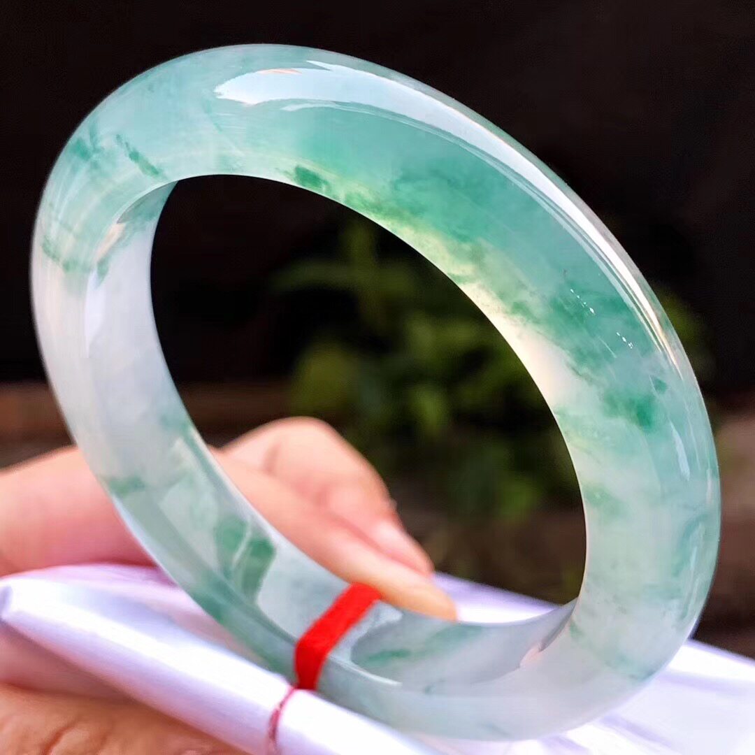 Ice species floating flower jade bracelet Myanmar a raw stone wide version floating sun green jade bracelet Clear green jade bracelet female