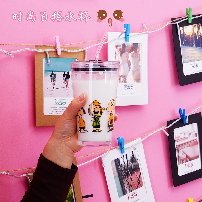 ins straw scale glass cups with shubby net red home water glasses cute adolescent heart milk tea cup subreddits