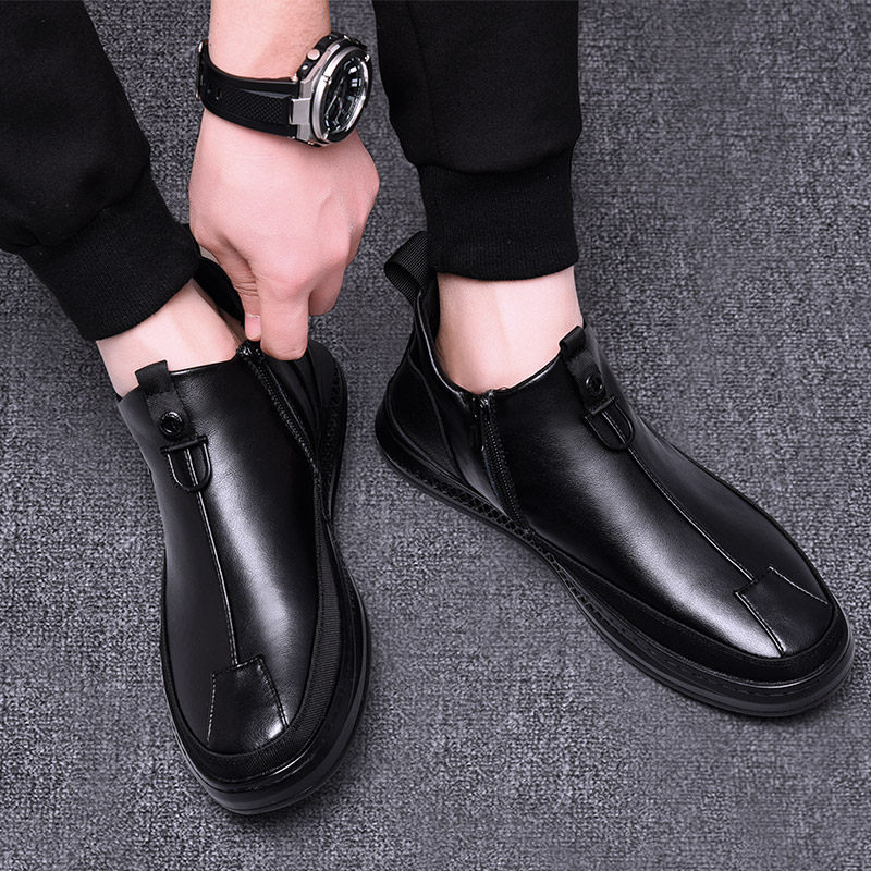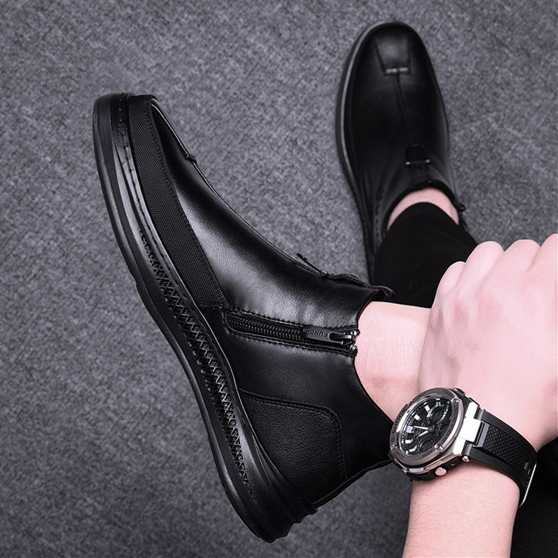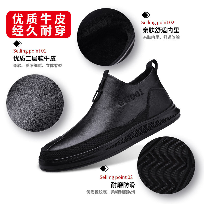 Men's shoes winter plus velvet warm trendy shoes leather men's casual leather shoes business Korean version of the British all-match trend shoes