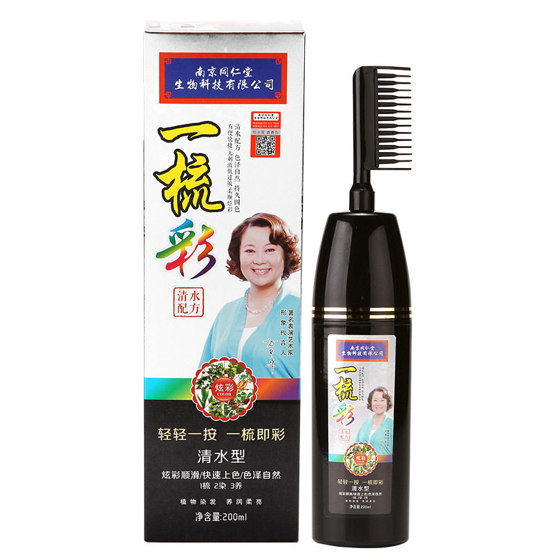 Tongrentang 1 comb color plant hair dye pure yourself at home dyed hair cream male and female pop color One comb black
