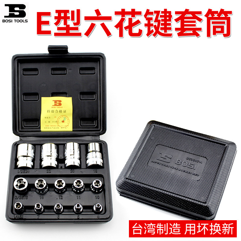 e-type socket set Star spline socket Six-flower socket wrench plum flower angle flower type socket head auto repair