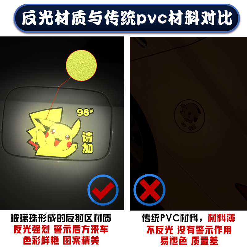 Pikachu car fuel tank cover body decoration stickers Personality creative text funny tips 9295 reflective car stickers