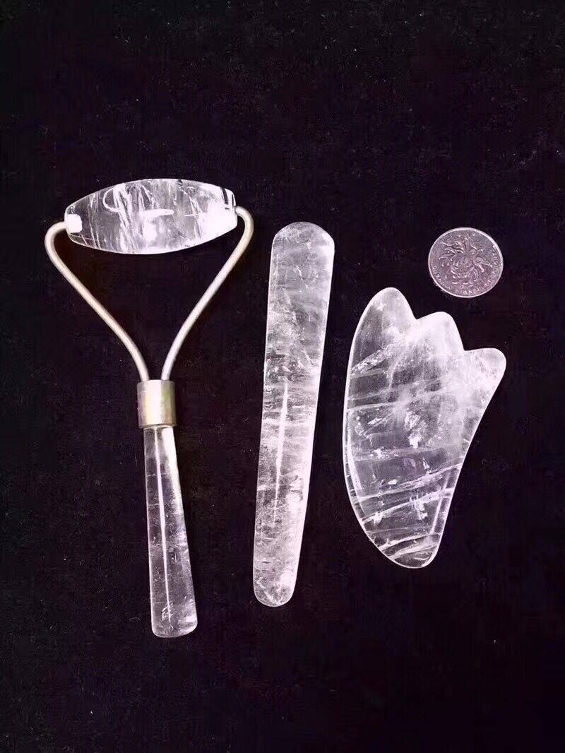Powder Crystal Massager Redial SCRAPING PLATE SET OF WHITE CRYSTAL MASSAGER DIAL GLUTEN SCRAPING PLATE SET OF POWDER CRYSTAL DOUBLE HEAD MASSAGER A DONGLING JADE SCRAPING PLATE A RED AGATE MASSAGE WITH A BLACK YAOSHI SCRAPING