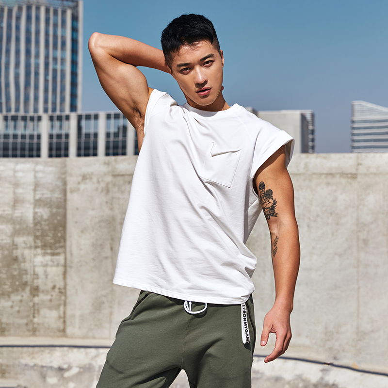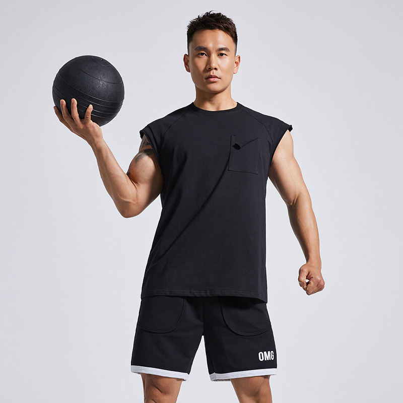 OMG tide brand quick-drying cotton fitness clothes top sports vest men's sweat-absorbing loose waistless sleeveless T-shirt