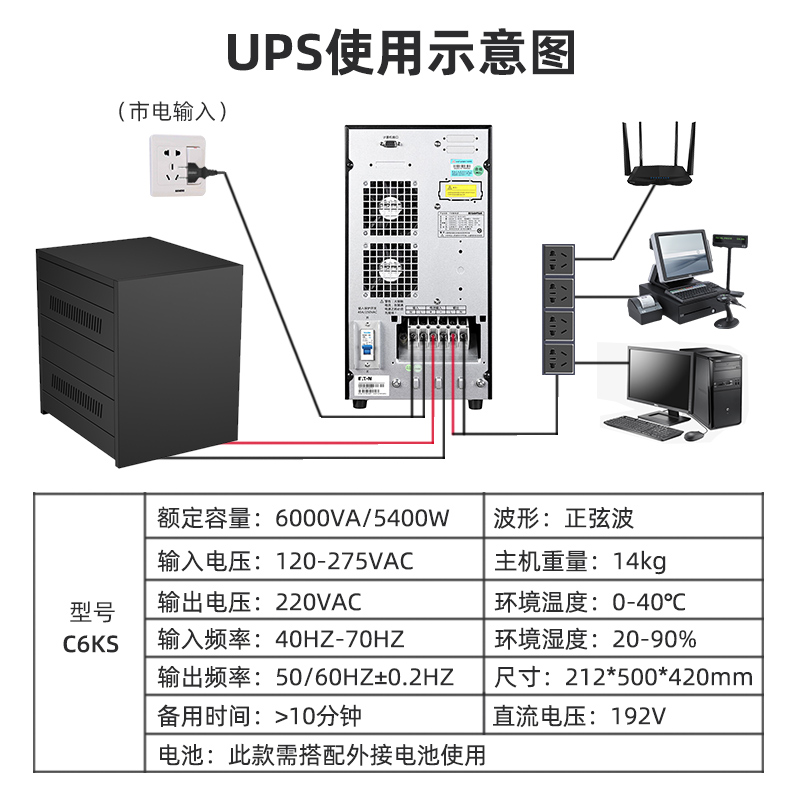 Shante UPS uninterruptible power supply C6KS online 6KVA 5400W regulated backup power supply long delay 2 hours