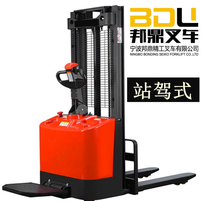 Ningbo Bangding all electric forklift stacker battery hydraulic lifting car 1 ton 2 tons small walking station drive