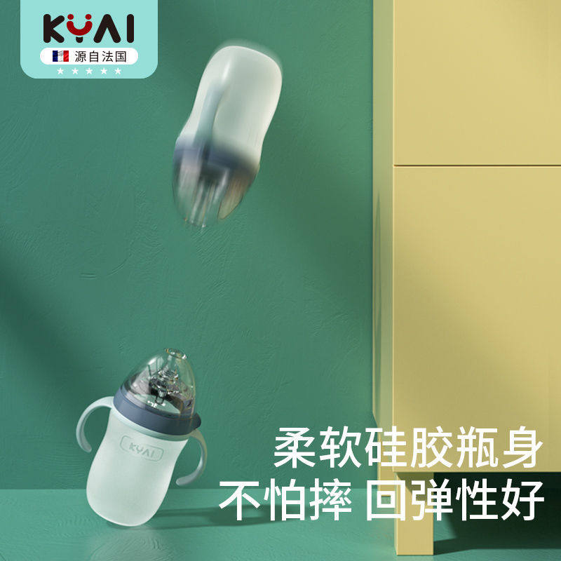 Soft Glue Milk Bottle All Silicone Soft Ultra Soft Super Soft Big Baby Anti-Fall Integrated Straw Newborn Baby Imitation Breast Milk Can Squeeze