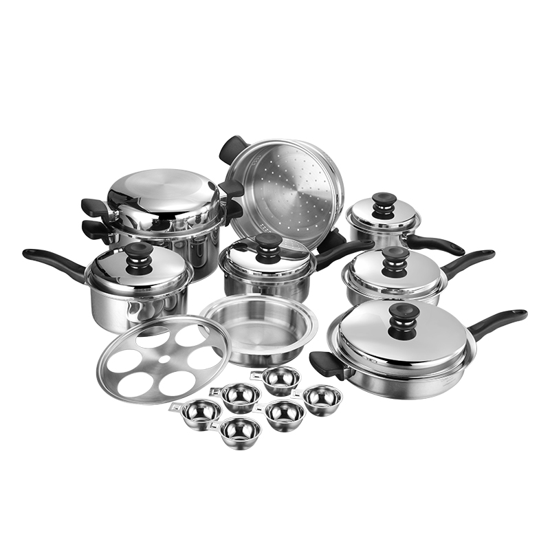 21 pieces Queen's suit 1 4 liters non-stick frying pan 3 liters non-stick frying pan 1 litre of milk pan 2 litres of milk pan 3 liters milk pan 6 liters of stockpot with lid sub 36cm round bottom seven layers of steel 304 queens pan
