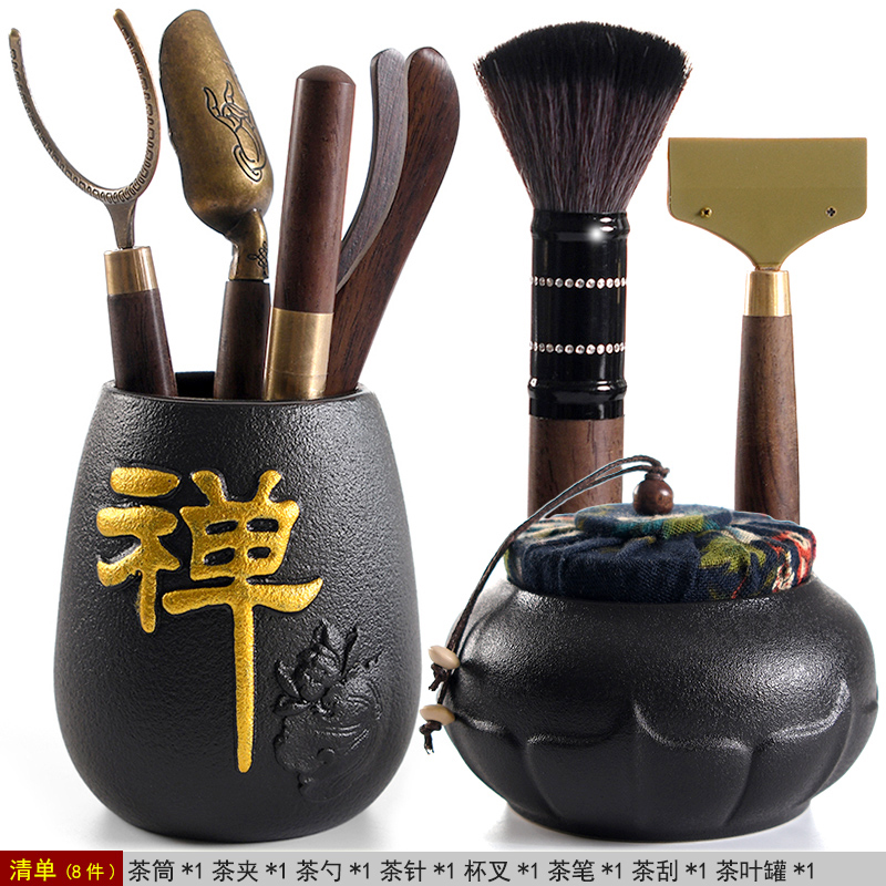 Ebony solid wood Tea Ceremony Six Junzi suit Kung Fu tea accessories 6 Junzi Daquan Tea making tools Tea clip Tea towel