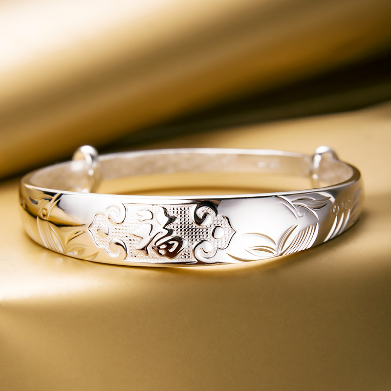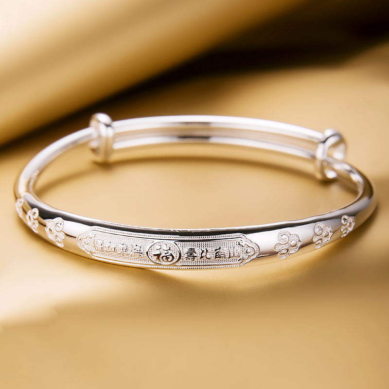 Jiu Le s999 silver bracelet female sterling silver Baifu auspicious wishful push-pull smooth mother bracelet to send gifts to elders