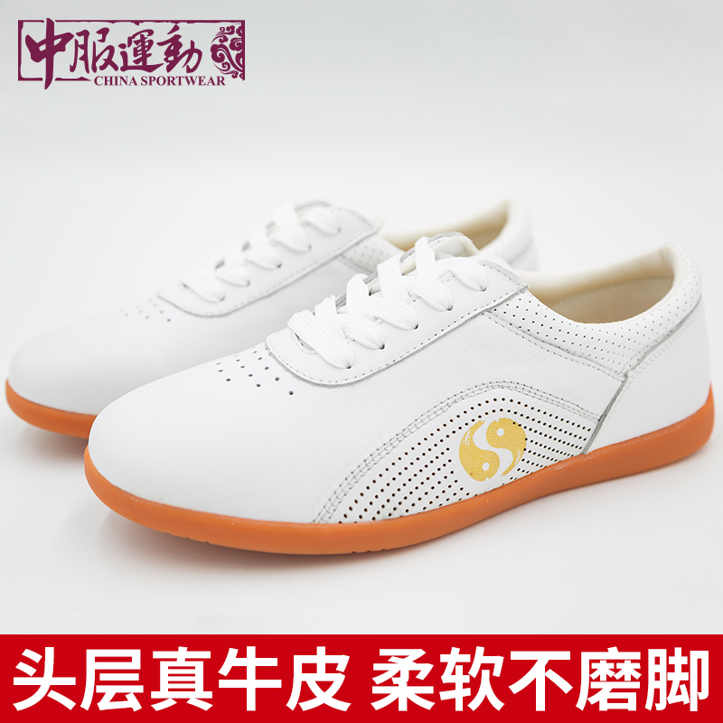Medium Clothes Sports Tai Chi Shoes Male Taijiquan Style Shoes Black Bull Gluten Bottom Female Head Layer Genuine Leather Martial Arts Shoes Cow Leather