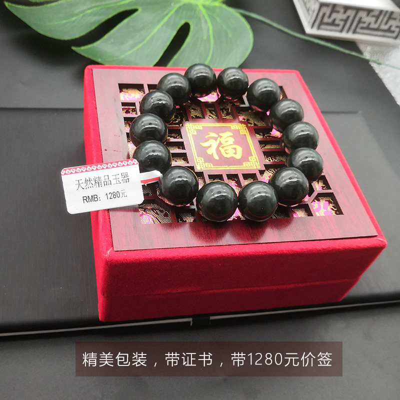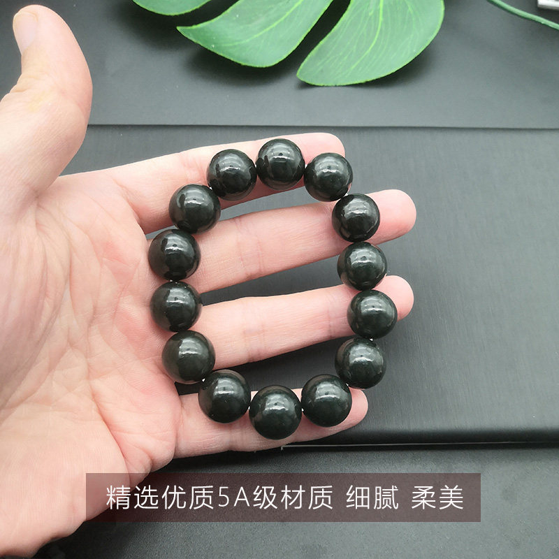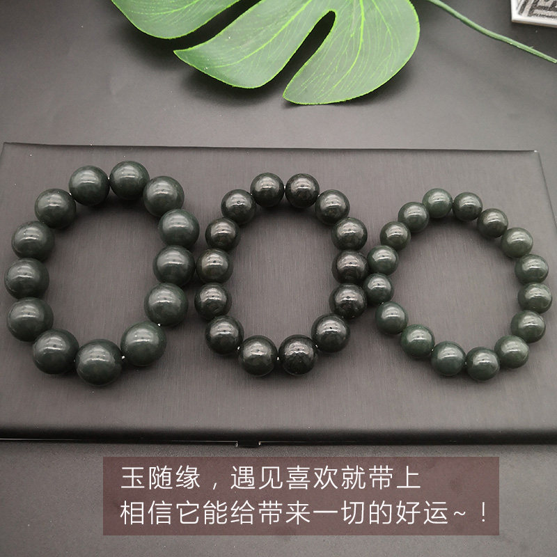 Natural Xinjiang hetian jade jade bracelet men's and women's black jade jade Buddha bead jade bracelet gift certificate birthday gift