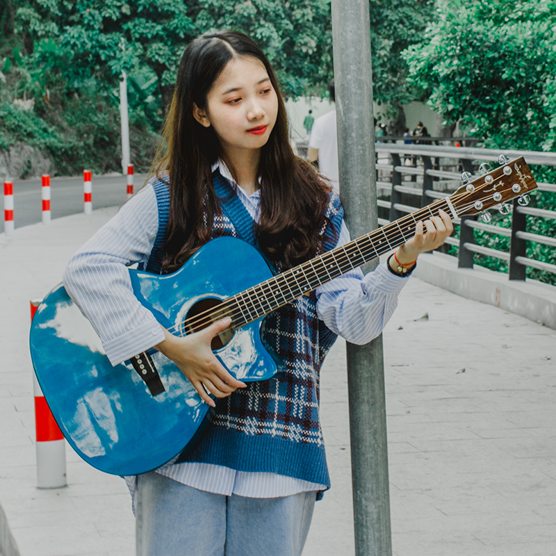 Bright light original wood color guitar (41 inch playing grade guitar) bright light ancient brown guitar (41 inch playing class guitar) bright light and blue color guitar (41 inch playing grade guitar) bright light original wood color giguitar
