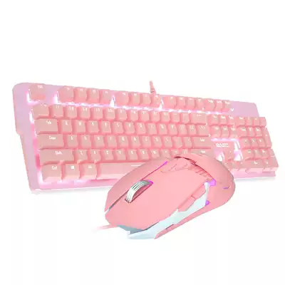 Baski cat claw pink real mechanical keyboard mouse set girl cute e-sports game dedicated cable blue axis red axis girl heart Net Red office desktop luminous cable notebook cherry blossom