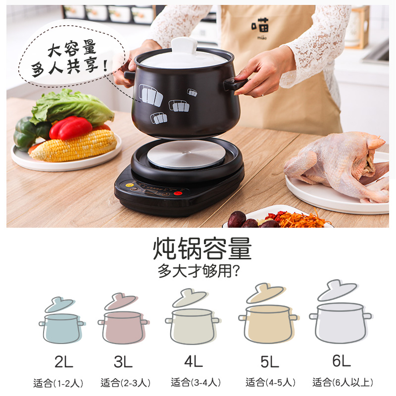 Multifunctional ceramic electric stew pot intelligent soup pot small stew pot casserole porridge pot household plug-in health pot