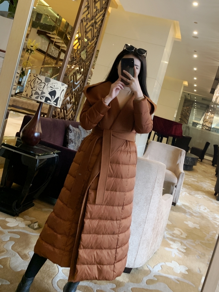 When double face is met with down high and warm with wind degree ~ long version of down clothes woman Han version loose personality wins