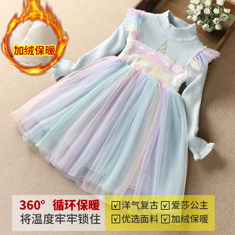 Clearance at a loss girls Aisha princess dress Frozen children's clothing children's dress Western style autumn and winter sweater skirt