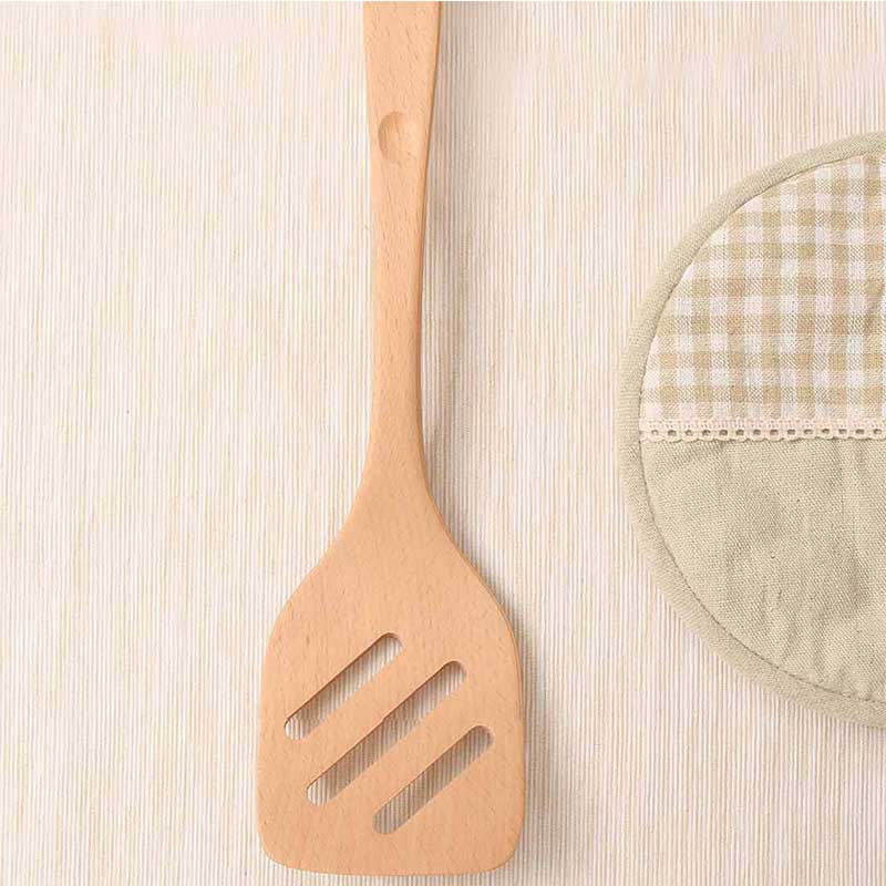 Imported beech flat hole spatula wooden spatula non-stick pan spatula solid wood spatula frying spatula