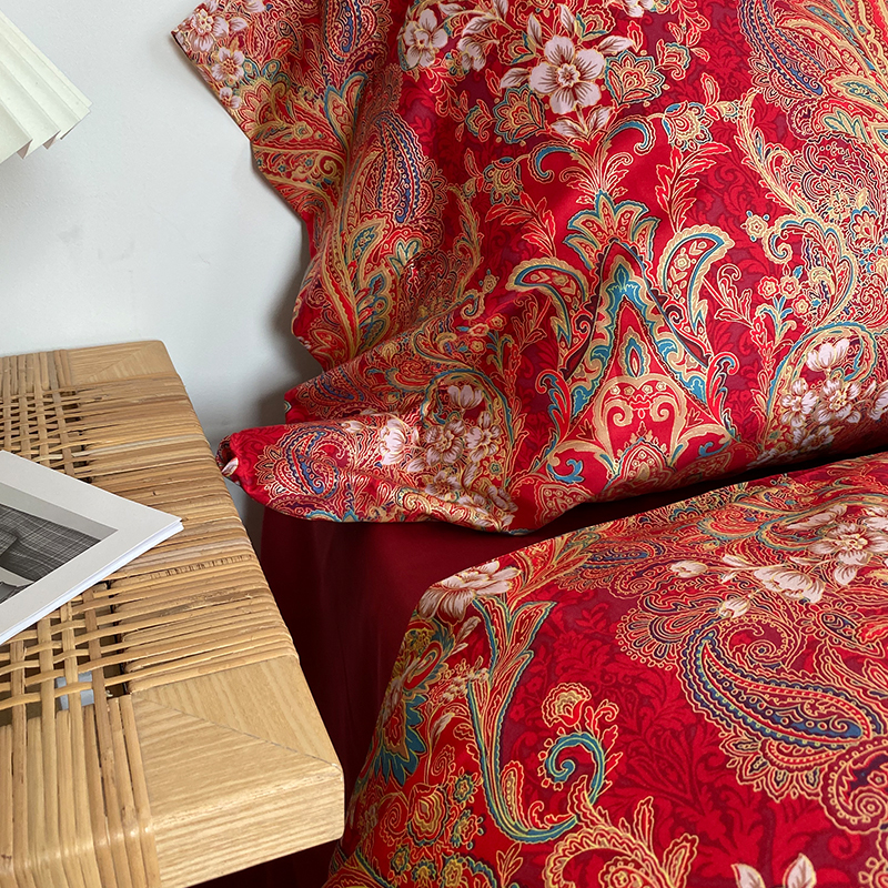 China Wind All-cotton Wedding Four Pieces Red 60 High Branch Pure Cotton Double 1 8 m Gift Wedding Bed Goods Kit