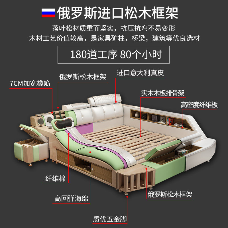 Massage leather bed double bed 1 8 meters leather bed modern minimalist master bedroom king bed 2 2 × 2 4 tatami bed