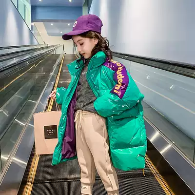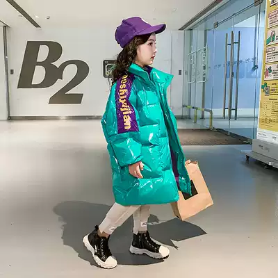 Girls' winter clothes down cotton jacket 2021 new children's foreign pie thick coat big children's cotton clothes bright face medium and long version