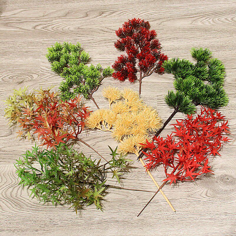 Simulation of pine needles, cypress branches, fake flowers, maple leaves, potted pine branches, props, dry flowers, plastic flowers, pine leaves, fake leaves