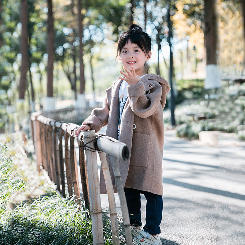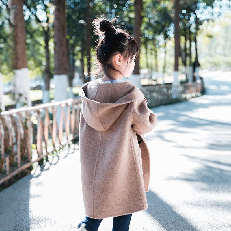Children's double-sided woolen coat winter new baby horn buckle parent-child wool mid-length foreign style girls' cashmere coat