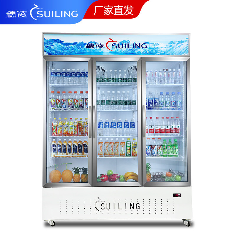 Ear-Ling Commercial Standing Supermarket Drinks Display Cabinet Refrigerated Fruits Real Air-cooled Preservation Cabinet Push-and-pull Glass Door Ice Cabinet