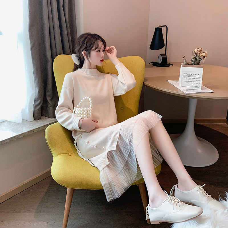 Breastfeeding bottoming shirt autumn and winter dress mid-length version go out fashion hot mom breastfeeding sweater female winter breastfeeding tide