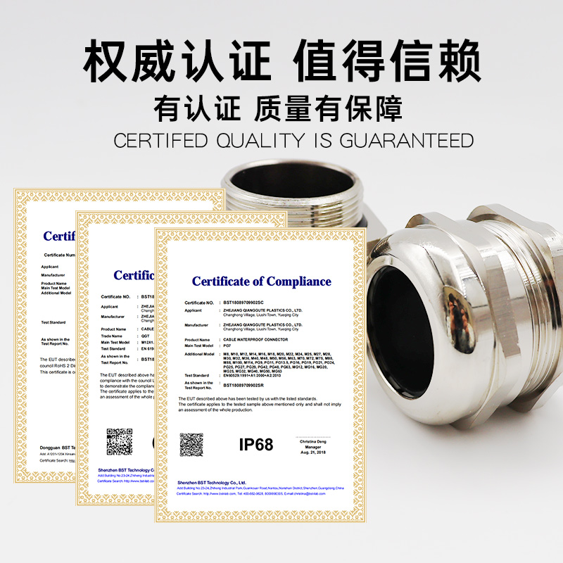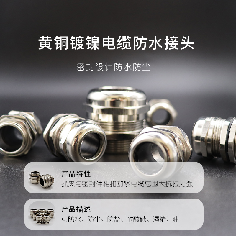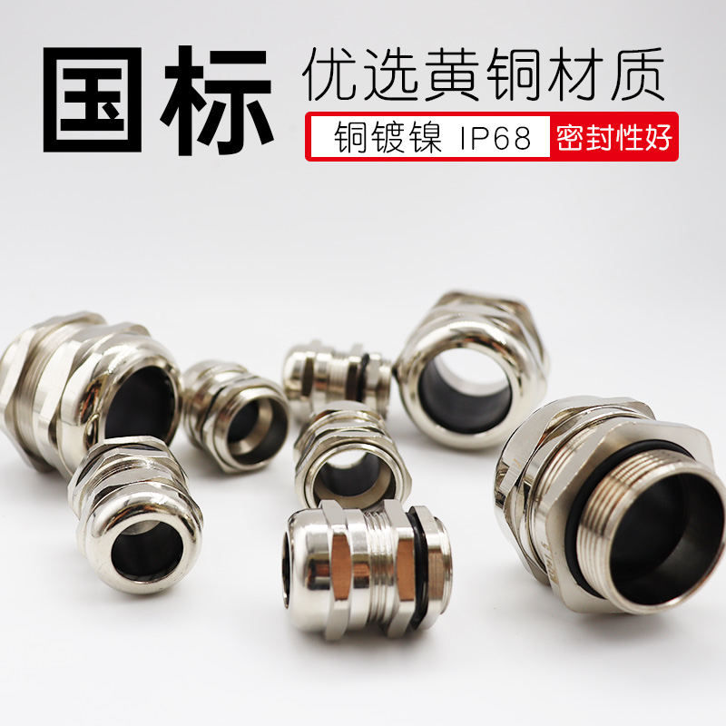 IP68 metal cable waterproof connector lock glen head copper nickel plated fixing head metric m de pg packing letter