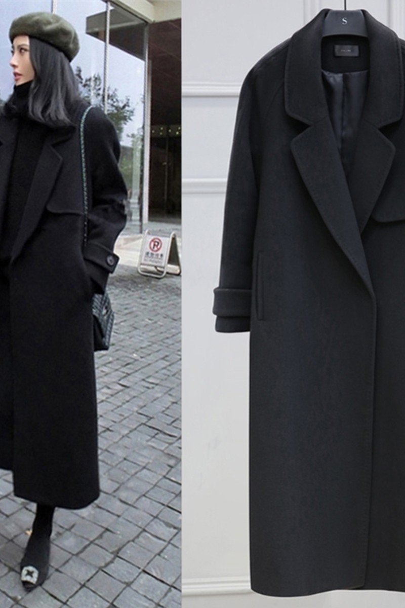 Winter large size women's clothing fat sister is thin and temperament woolen Korean coat women's mid-length version of the cocoon thickened coat women